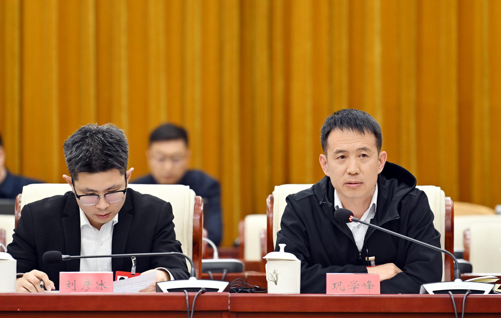 3月8日,全國人大代表鞏學峰(右)就建立全國統(tǒng)一天然氣市場體系提出建議。內蒙古新聞網·草原云記者 馬建兵 攝