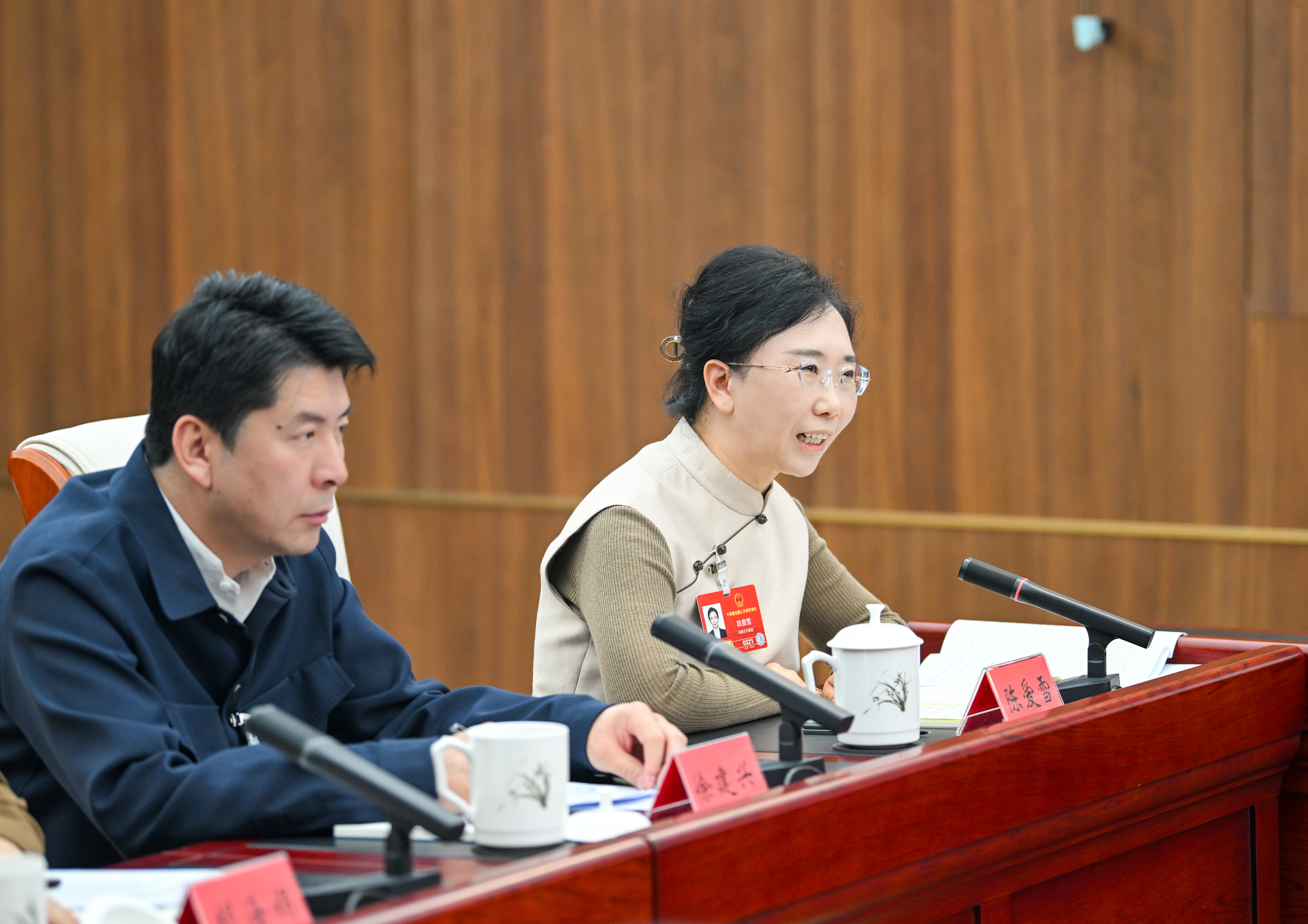 3月8日,全國人大代表陳愛雪(右)建議,優(yōu)化收入分配結構,進一步縮小城鄉(xiāng)居民社會保障差距。內蒙古新聞網·草原云記者 孟和朝魯 攝