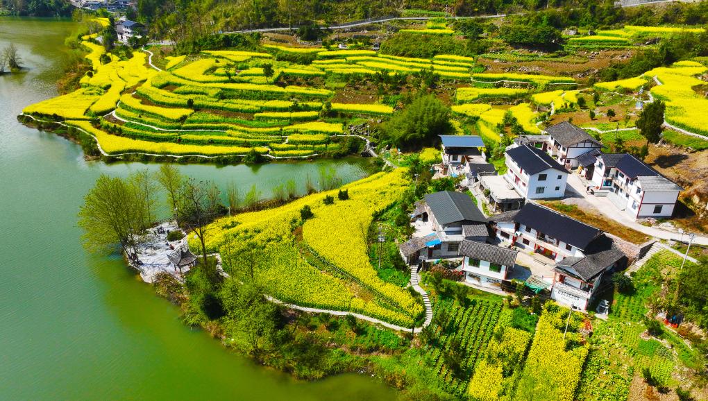 重慶市黔江區(qū)阿蓬江鎮(zhèn)大坪村油菜花開放(2026年3月4日攝,無人機照片)。新華社發(fā)(楊敏 攝)