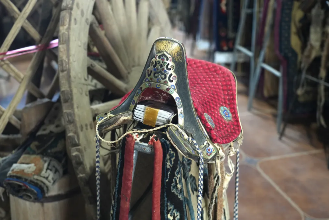 “馬鞍不只是騎乘工具,更是工藝與身份的象征。”楊潤一邊帶領記者參觀,一邊介紹道,不同地區的工匠手法不同,制作出的馬鞍風格迥異,而不同身份的人,所使用的馬鞍也有著嚴格的區別。在眾多藏品中,一件景泰藍馬鞍格外引人注目,“這件景泰藍馬鞍是當年貴族專屬,彰顯了古代工匠的精湛技藝,這件藏品的價值相當珍貴。”楊潤介紹。從實用工具到裝飾擺件,藏品全方位展現了馬在人類生活中的重要地位,以及不同民族的馬文化特色。