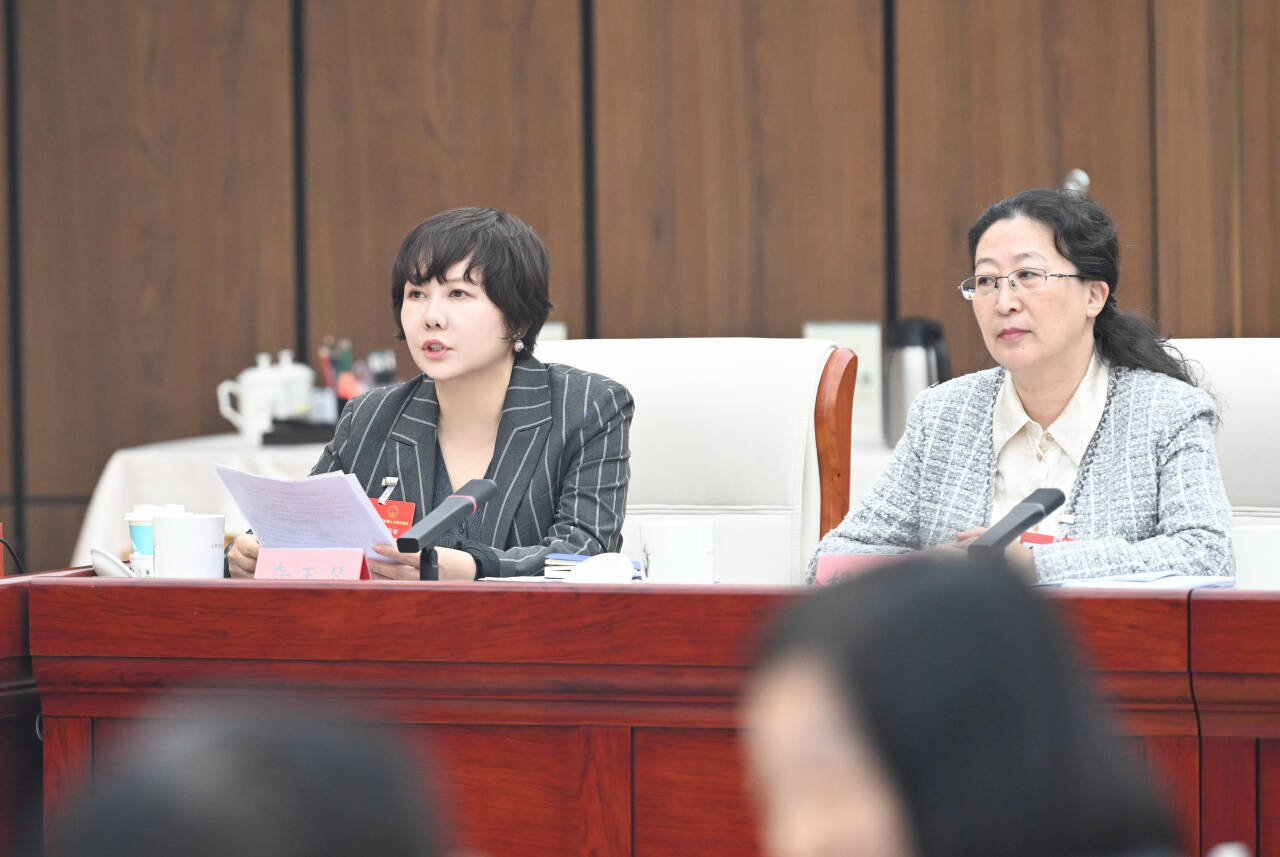 3月11日,全國人大代表奇玉琴(左)建議,強化知識產(chǎn)權(quán)協(xié)同保護,建立常態(tài)化聯(lián)絡(luò)機制,對重大知識產(chǎn)權(quán)案件聯(lián)合研判、快速維權(quán),形成行政和司法高效保護合力。草原云記者 孟和朝魯 攝